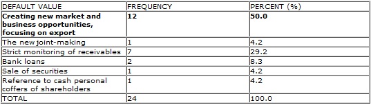 As you can see from Table 2, 54.3% of respondents want to grow sales- marketing department or this department is seen problem by SMEs. For 8.3 % financing is problem and method should be grown for 4.2 %.