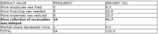 Visinescu ve Micuda (2009), according to research about SMEs which in European Union, we can see that collection of receivables of SMEs was delayed and bankruptcies and foreclosures increased. For example bankruptcies of SMEs increased in 2008 by 11% compared to 2007. Even in Denmark, Italy, Ireland, Norway and Spain rate of bankruptcies increased more than 25% in the same year. In addition to these that production costs of businesses increased, investments reduced or postponed is stated.